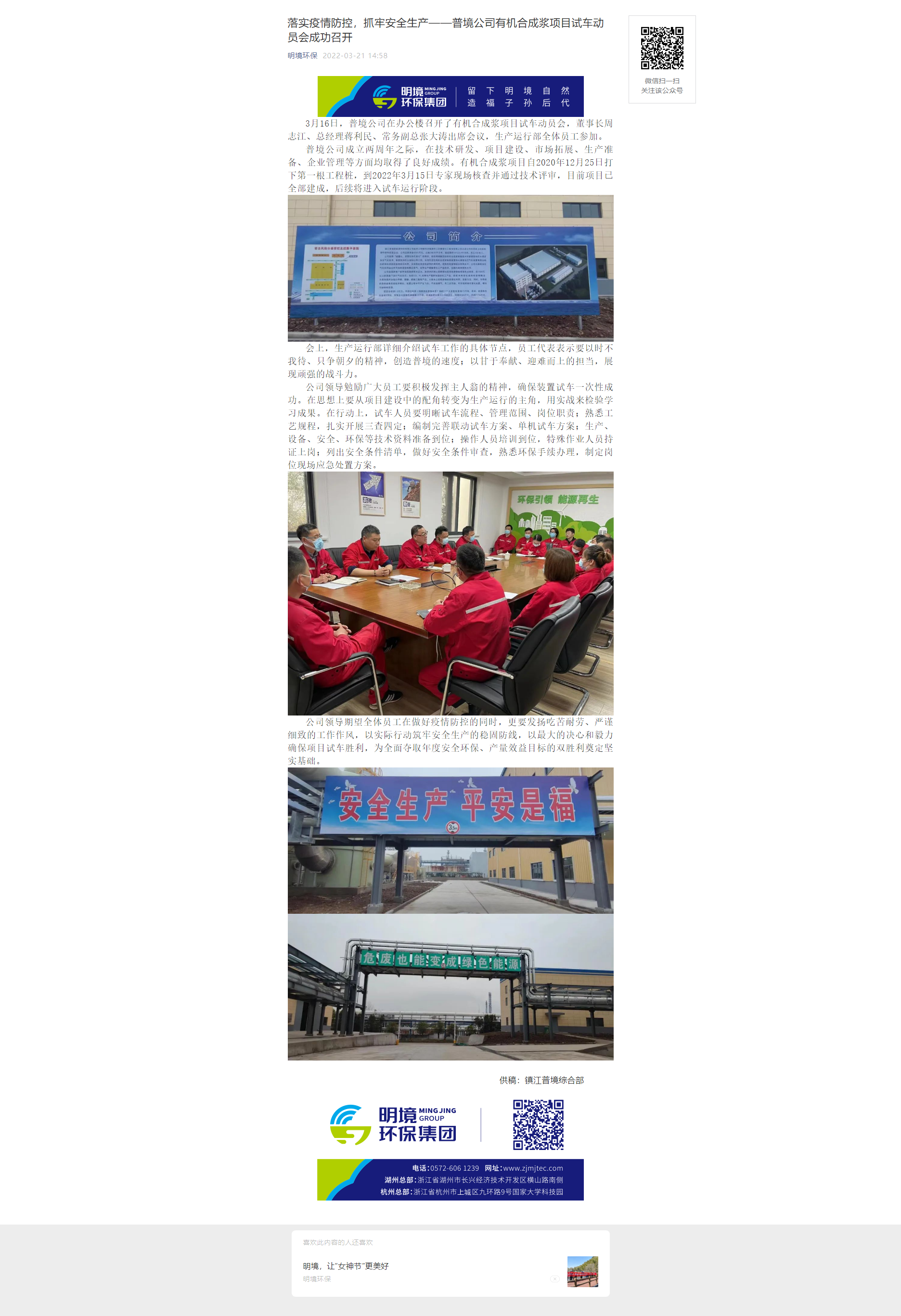 落實疫情防控,抓牢安全生產(chǎn)——普境公司有機合成漿項目試車動員會成功召開